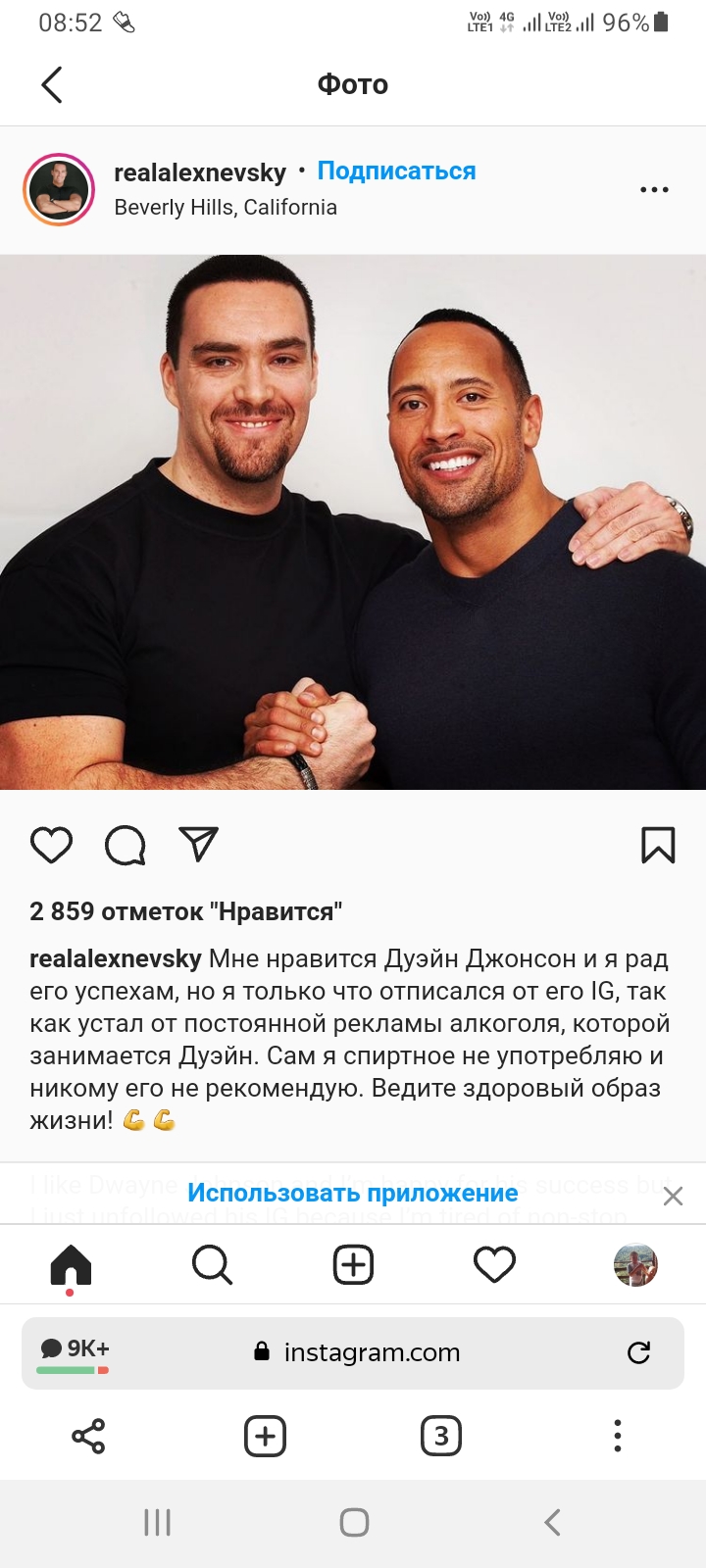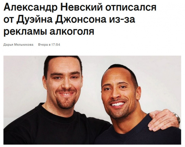 По словам Невского, он отписался из‑за постоянной рекламы алкоголя, которой занимается Джонсон. «Сам я спиртное не употребляю и никому его не рекомендую. Ведите здоровый образ жизни», — отметил он.