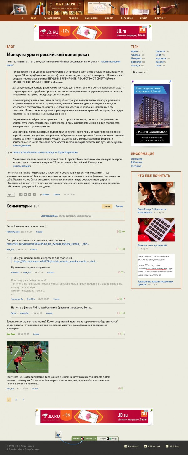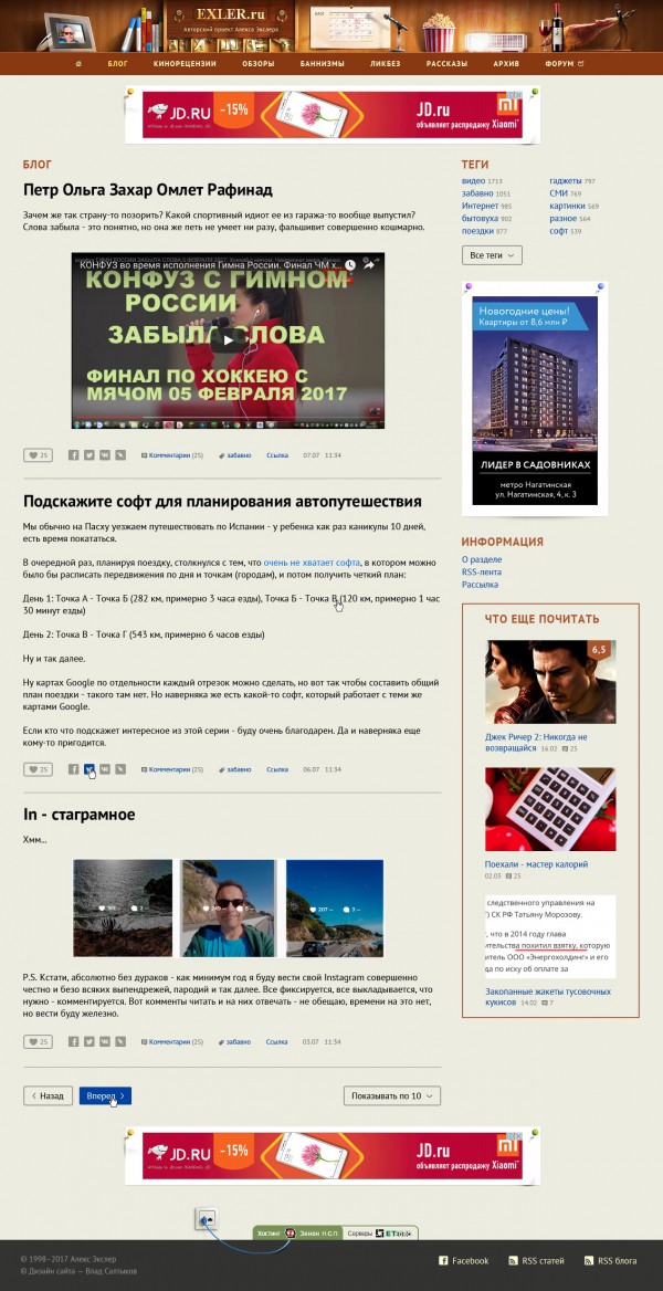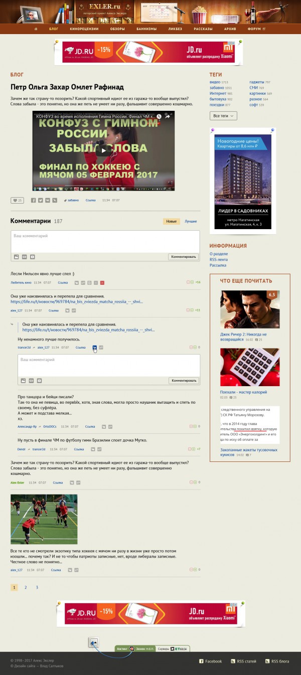 Блог с тюнингованным дизайном. Три картинки - лента блога, комменты в неавторизованном виде, комменты в авторизованном. В ленте блога еще показано, как предлагается делать цитаты в постах блога.