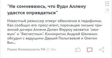 Да, ну и мне еще не хватает возможности убирать некоторые издания из раздела "Главное" (сейчас этой возможности нет). Потому что, например, журнал "Слон" при переходе на страницу со статьей сначала лепит отдельным окном видеорекламу. Так что нафиг он мне сдался в разделе "Главное".