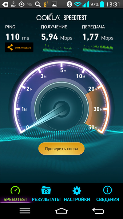Скорость канала - хорошая: у меня дома в Испании предыдущий роутер выдавал менее мегабита (хотя в дороге мог показывать несколько мегабит), сейчас выдает вот так.