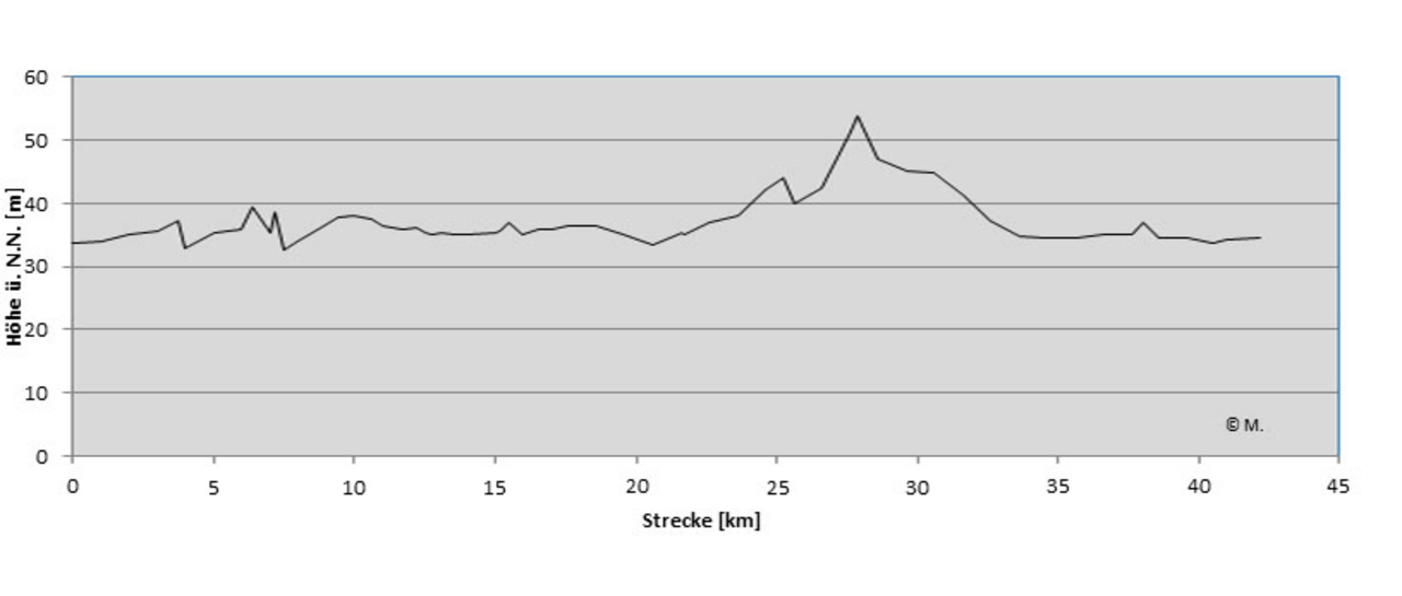 P.S. А, слепой, не заметил. The entire route inclines only 2.4 metres. Хотя я вот в других источниках вижу другие цифры, но не суть, все равно еще более плоский, чем Берлин.
