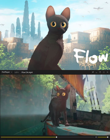 Как и Громит, звери там не разговаривают, но всё понятно. Зато не нужно ждать перевода и уже сейчас можно найти - «Течение / Поток / Flow / Straume» - и посмотреть. Мне очень понравился 😺