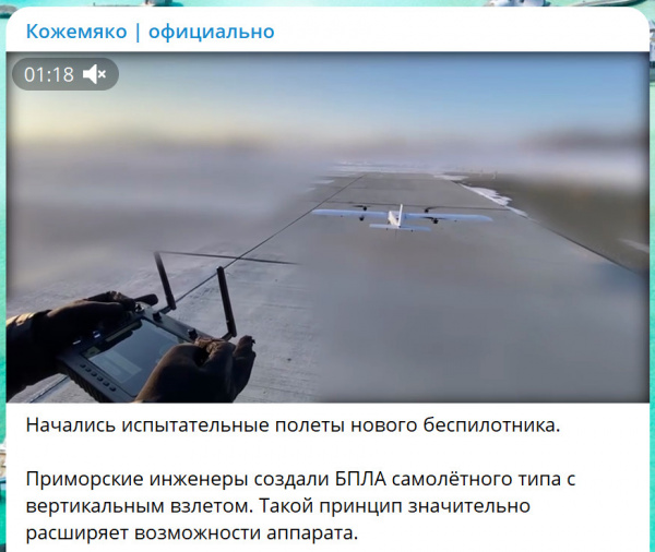 В Приморском крае создали новый российский дрон. Уже испытали и похвалились. Летает аки пчела. Взлет у него - вы не поверите! - вертикальный! Разумеется, теперь они полетят к российским бойцам в зону специальной миротворческой операции по деэлектрификации Украины.