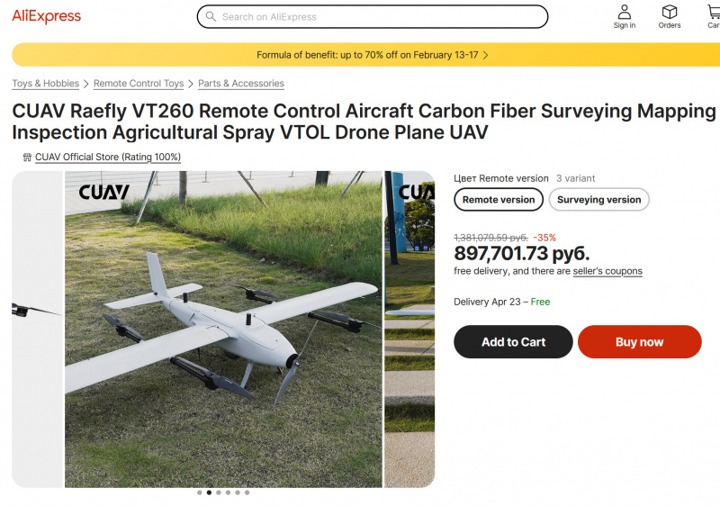 И, конечно же, это китайский CUAV Raefly VT260 с Aliexpress.