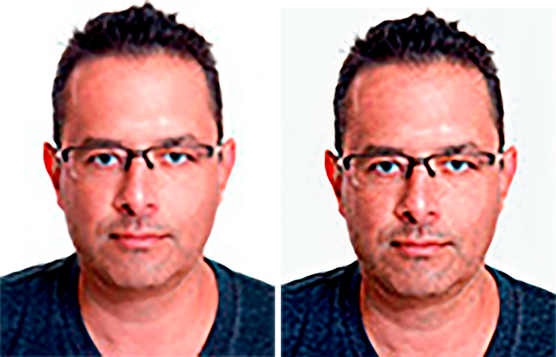 Вон, справа, у носа сразу стало видно прыщик!!!! а слева его нет!