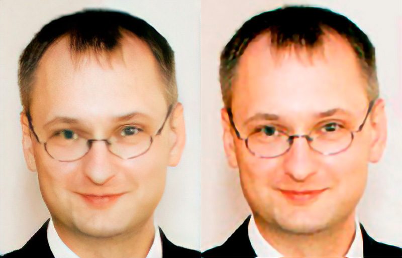 :) Не, ну понятно, снимаю шляпу. Но в левом больше деталей, волосы читаются, уши чётче и т. д. Потому что они дорисованы нейросетью. (для зрителей -- скопируйте адрес картинки и откройте в отдельной вкладке в оригинальном размере).