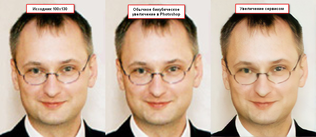 Исходник 100х130, сервис увеличил фоту в 400х520.