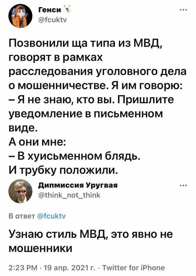 О, да. Дружку так из прокуратуры звонили. Вся схема рушится, когда говоришь, да ну нафиг.. Чего по телефону то, вызывайте повесткой, координаты вы знаете.