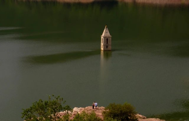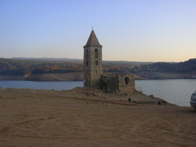 Например, в муниципалитете Виланова-де-Сау есть вот такая церквушка Сант-Рома, у которой из воды торчала только верхняя часть - фото отсюда.