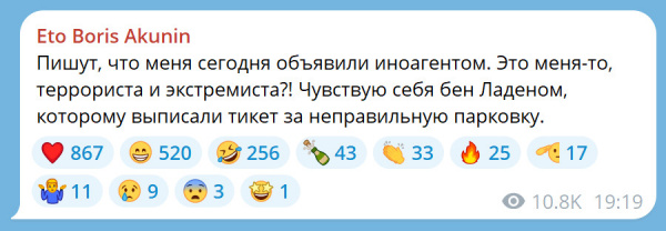 Тут особенно нелепо то, что Бориса Акунина до этого в Мордоре еще и объявили террористом, экстремистом и черт знает кем, а теперь - просто иноагентом.
