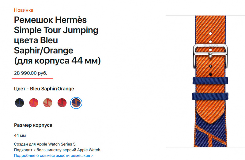 Ну а если у вас нет 43990 рублей на достойный ремешок для часов Apple Watch, тогда есть вот такой вариант - Hermès Simple Tour Jumping всего за 28990 рублей. Ну да, выглядит чересчур простенько, да и цена - скорее для бедных, но просто как разумная альтернатива.