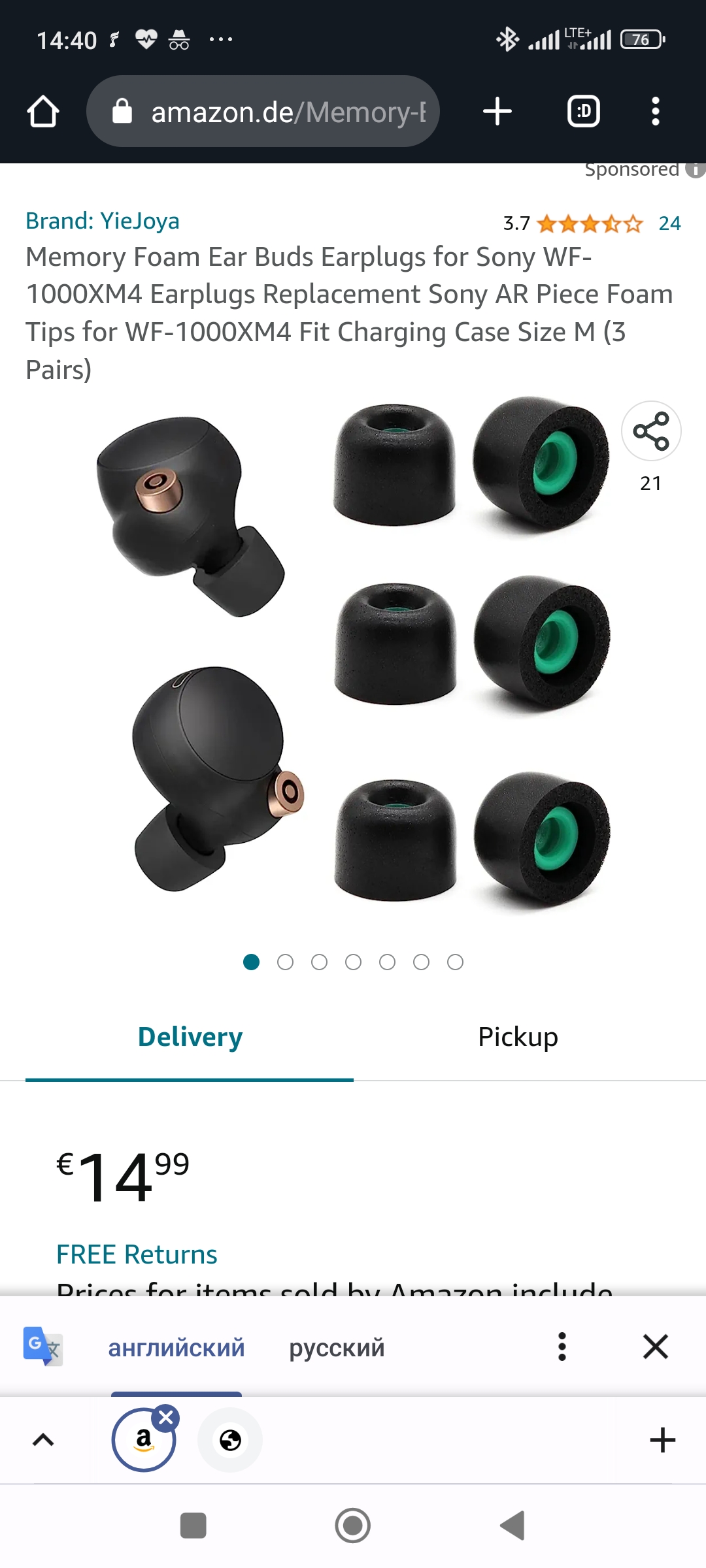 И это ещё божеская цена, не оригинал. А оригинальные Sony EP-NI1000 стоят 20, а то и 33 евро за пару.