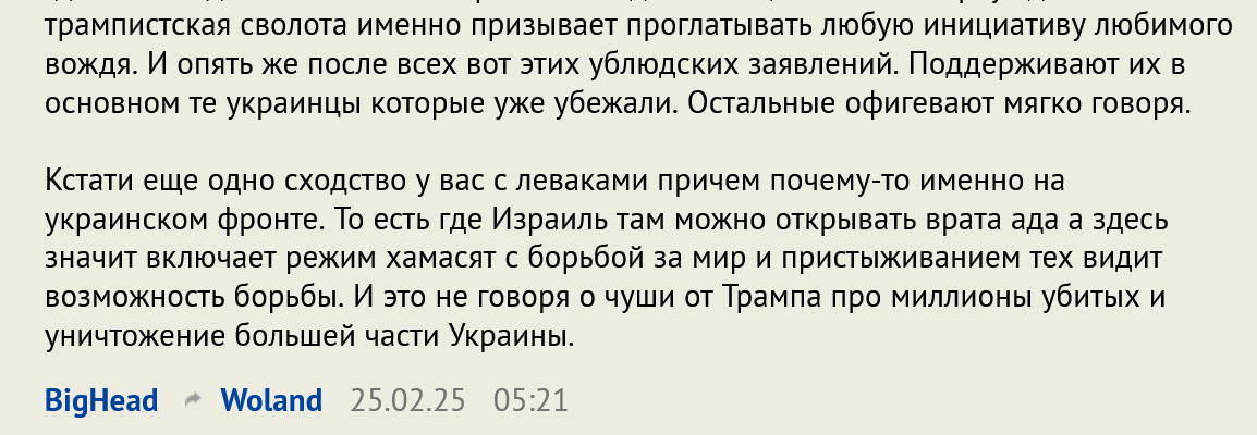 Как гражданка США, не имеюща отношения ни к России, ни к Украине, не понимаю, чем это Трамп скотина? Он действует согласно голосам своего народа, которому надоело оплачивать нескончаемую войну, которая нас никак не касается. Люди платят огромные налоги не для того, чтобы их отправлять на ведение бесконечной войны и оплачивать смерти сотни тысяч людей. К тому же, мы все понимаем что большинство отправленных миллиардов не дошли до получателя и были «распилены» между собой ✌🏽