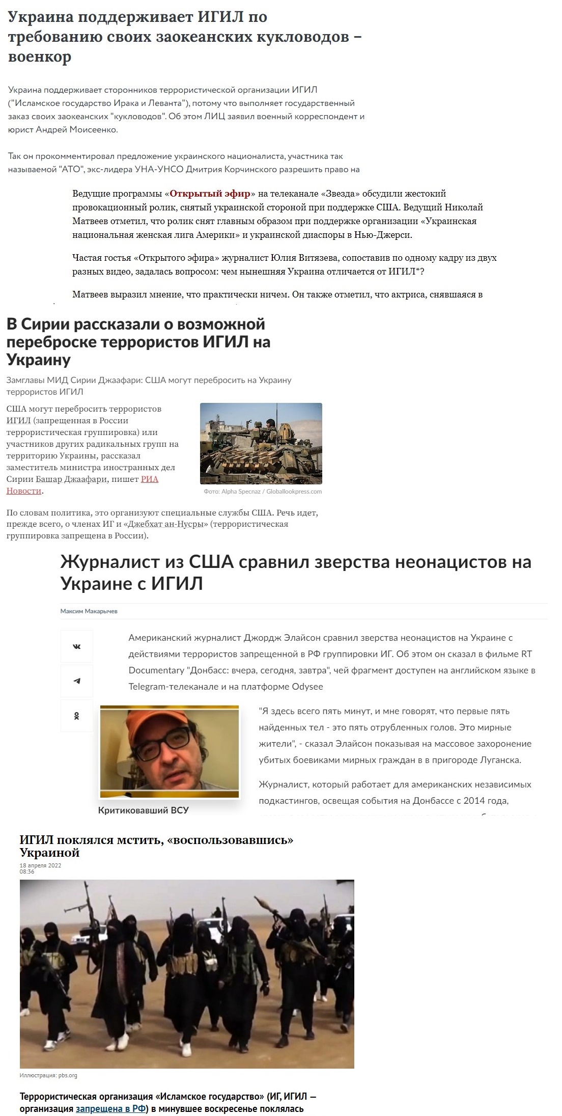 Во время очередного обострения на росТВ Украине приписывались тесные связи с ИГИЛ