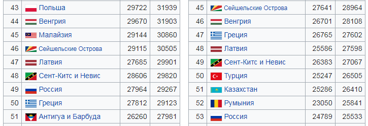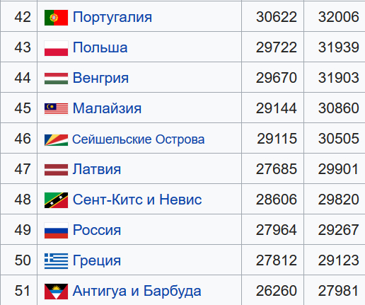 Между прочим, на 2018 год по данным МВФ этот показатель у России равен 29 267 долларов.