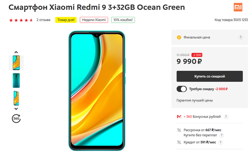 Upd: В "М.Видео" со скидкой Redmi 9 и вовсе за 9990 рублей версия 3/32 (он с NFC, как там написано).