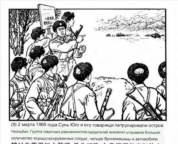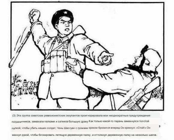 Сначала сборище бородатых бродяг в дубленках пришли на китайскую землю, полезли в драку, а потом, собрав выбитые зубы, решили взять хитростью и начали переписывать историю. Когда этот номер не прошел, то поехали на китайских бойцов железными танками, но китайские бойцы с пулеметами и гранатолупами пожгли те танки, и так правда победила.