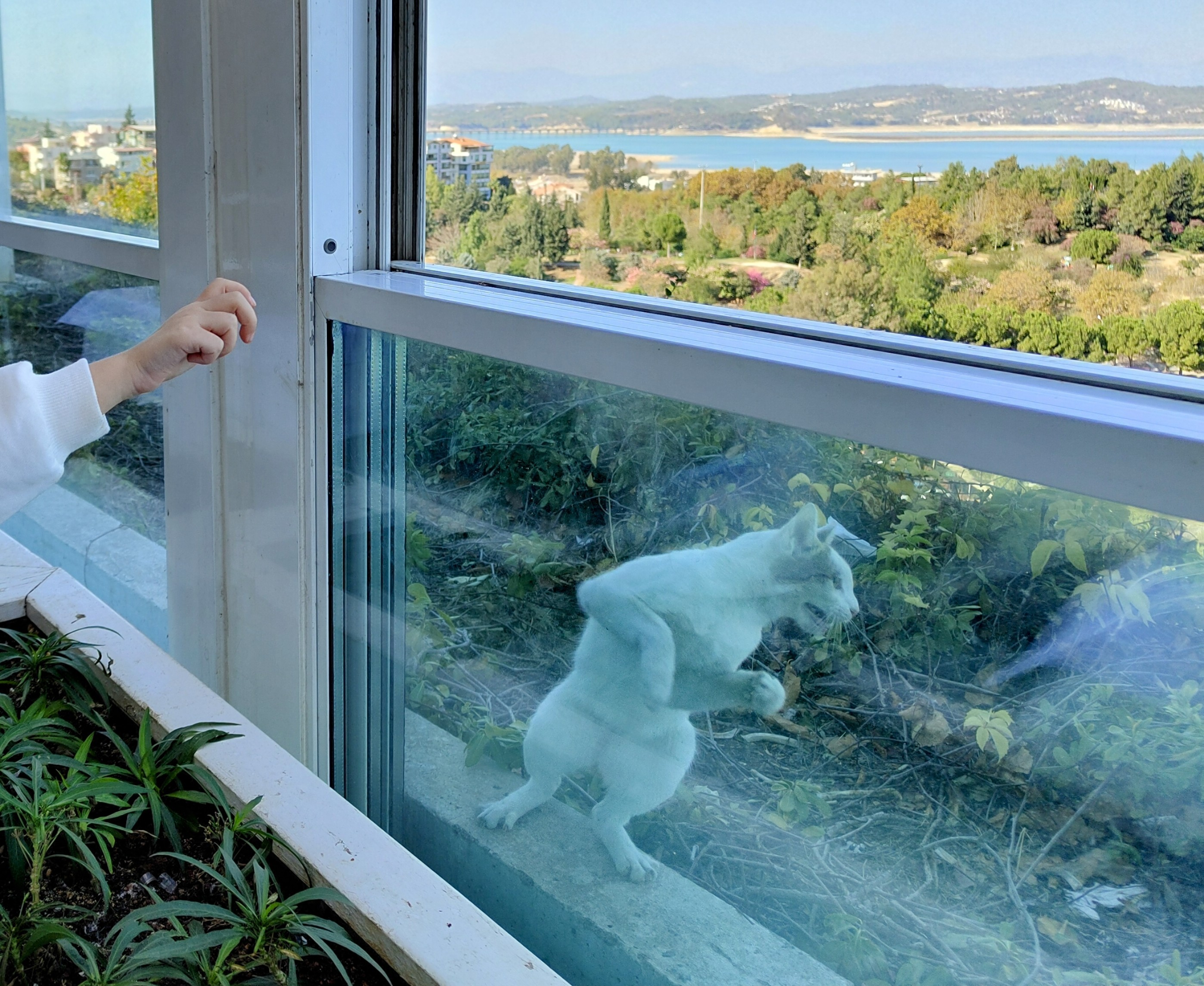 Я встал, прошёл в другую комнату. "Картина маслом" (с)Гоцман, "Ликвидация" - кот висит на передних лапах, вцепившись в форточку (закрытую) и бьёт задними лапами в стекло окна ниже.
