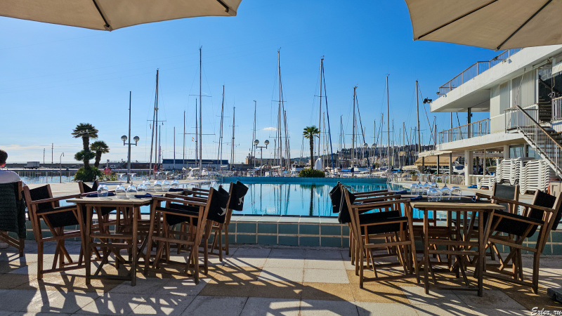 Сели в ресторанчике на открытой террасе - так, чтобы видеть порт и море.