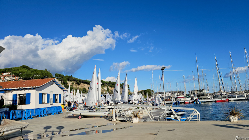 В Аренисе проходила регата на маленьких лодочках с парусом - участники регаты возвращались на берег прямо рядом с рестораном, где мы сидели.