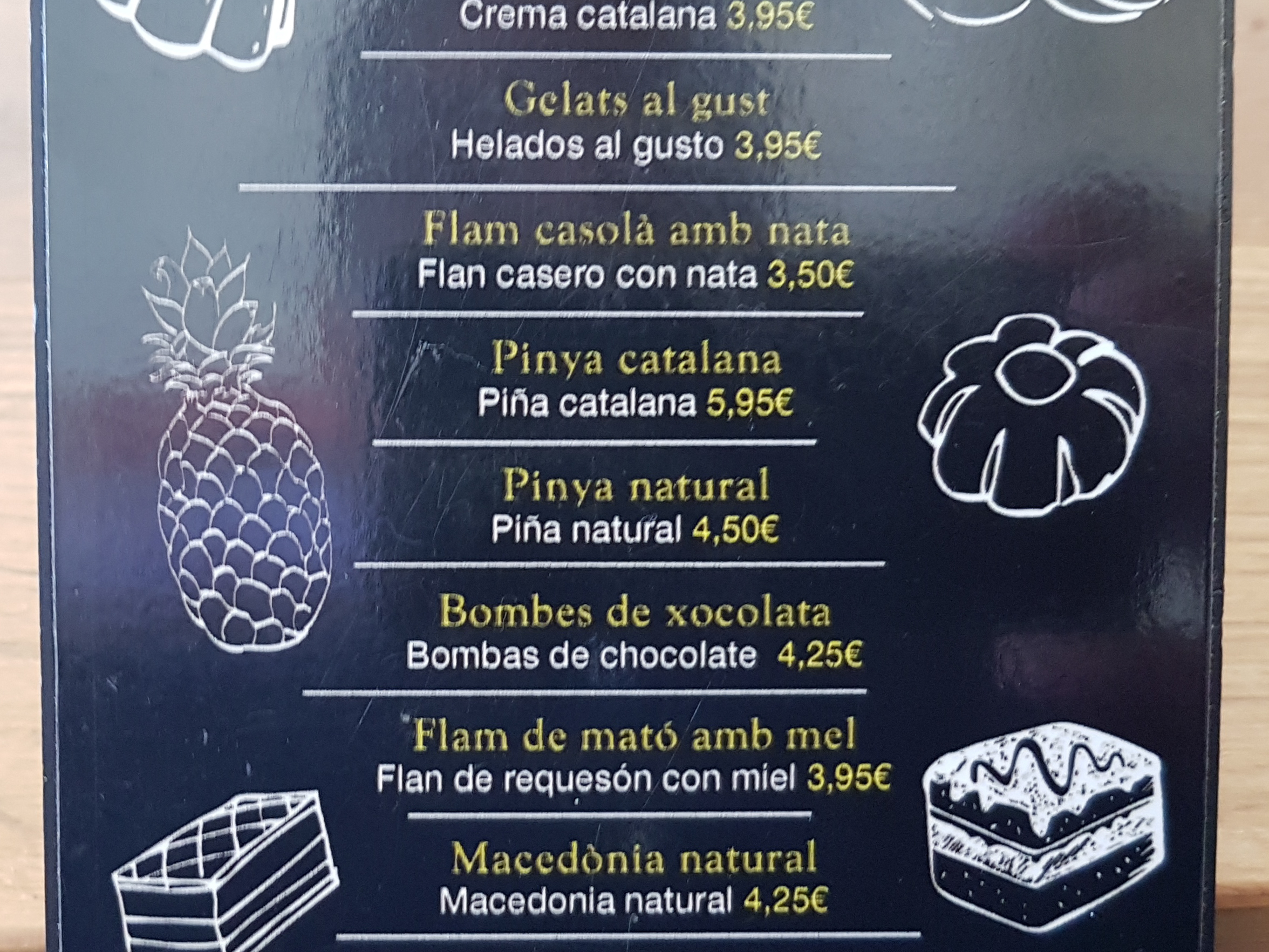 В меню десортов обнаружили забавный момент. Обычный ананас - €4,5. А вот каталанский ананас - аж €5,95! Потому что патриотизм и прочая индепенденсия!
