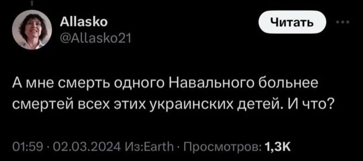 Ты (в качестве алаверды) не понимаешь, или наоборот - хорошо понимаешь, что война кончится только после изменения власти в РФ. А для этого нужно растить оппозицию из того, что есть. Просто больше её растить не из чего.