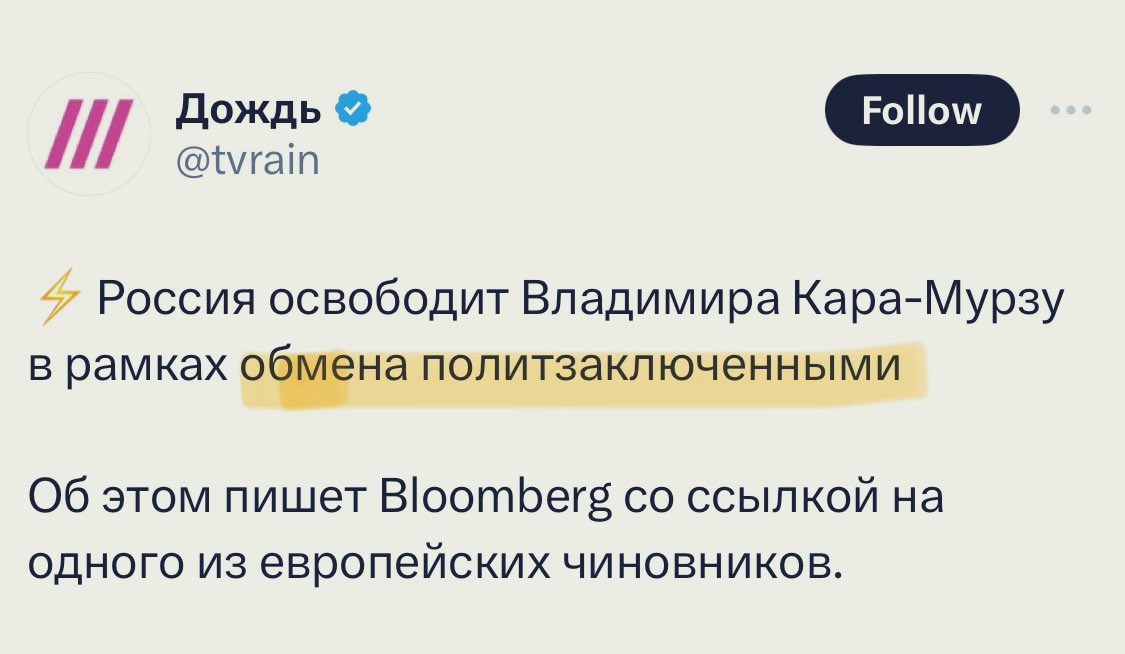 Я, как и очень многие, конечно же, следил за той движухой с российскими политзаключенными, которая указывала на то, что готовится какой-то обмен.