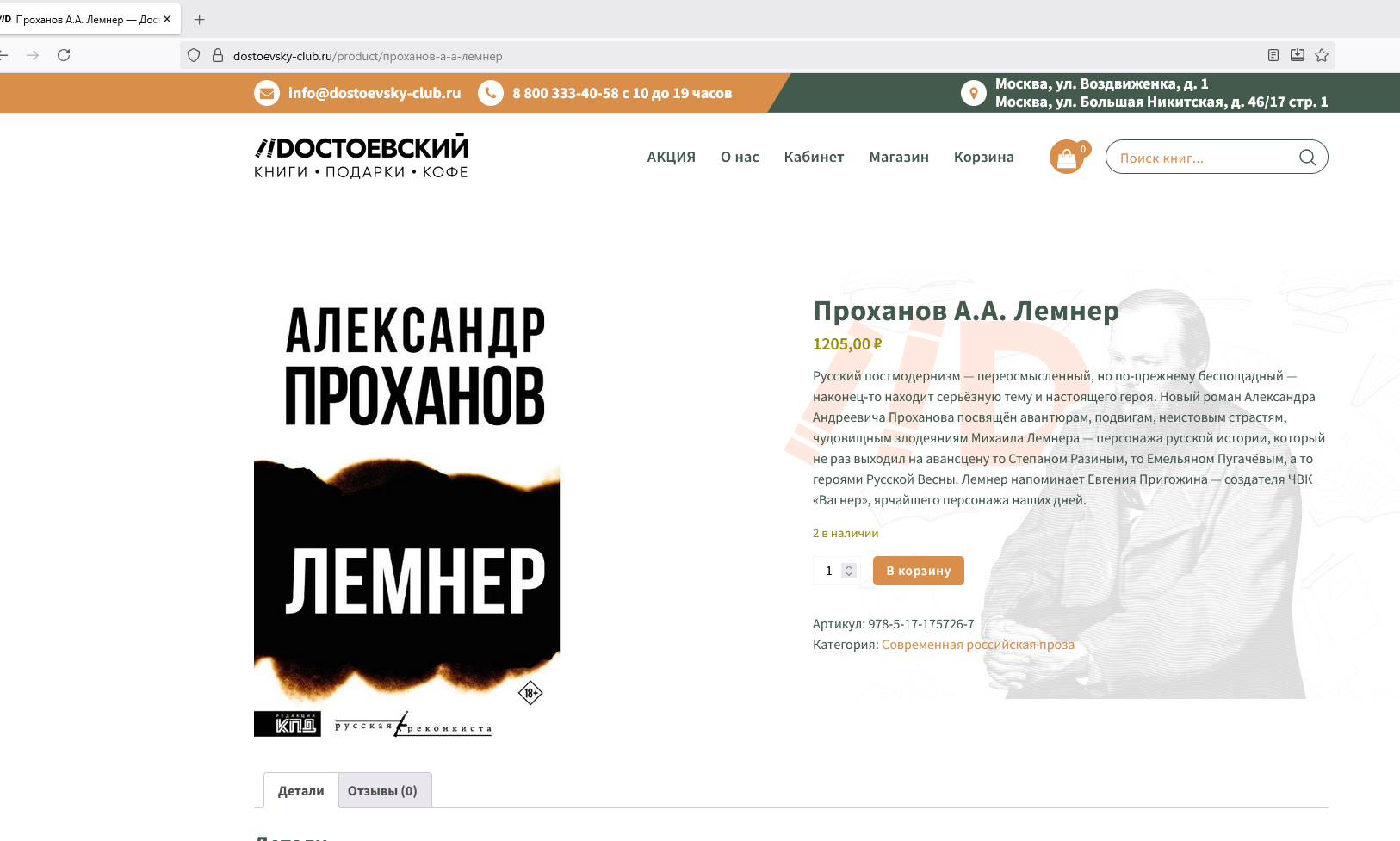 Новый роман писателя Александра Проханова «Лемнер», прообразом главного героя которого стал создатель ЧВК «Вагнер» Евгений Пригожин, сняли с продажи, обратило внимание «Эхо». В книге среди прочего описывается, как российский президент, выведенный под именем Леонида Леонидовича Троевидова, хранит тела врагов в кабинете и насыщается кровью девственниц.