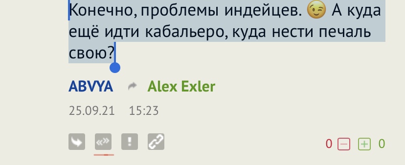 Конечно, проблемы индейцев. 😉 А куда ещё идти кабальеро, куда нести печаль свою?