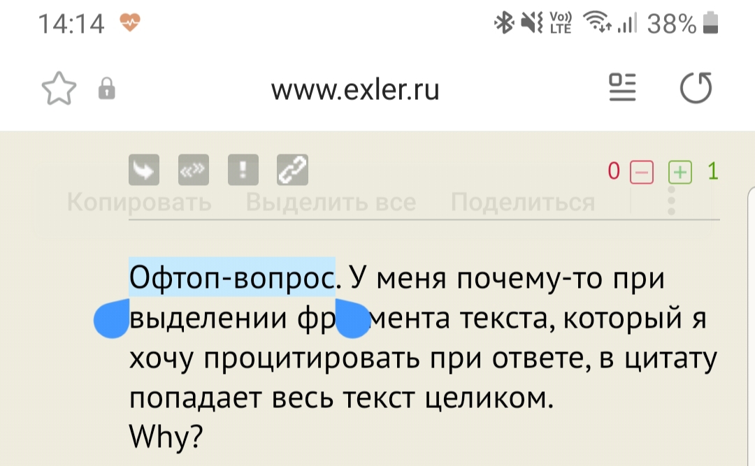 Например, сейчас, чтобы процитировать этот фрагмент твоего комментария мне пришлось удалять его большую часть, хотя выделил именно нужный мне текст и нажал вот эту кнопочку. (Игори-сан, привет)