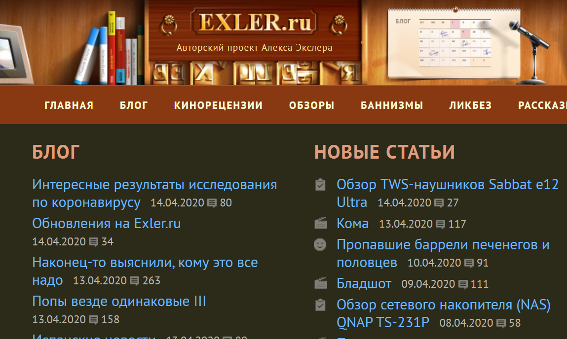 2. Так как в условиях карантина обзоры гаджетов становятся менее актуальными, чем рецензии на фильмы и сериалы, да и мне сейчас значительно сложнее тестировать различные устройства, я немного меняю график публикации больших статей. Теперь на Exler.ru кинорецензии будут выходить в понедельник, среду и пятницу, во вторник - обзор или ликбез, в четверг - баннизмы.