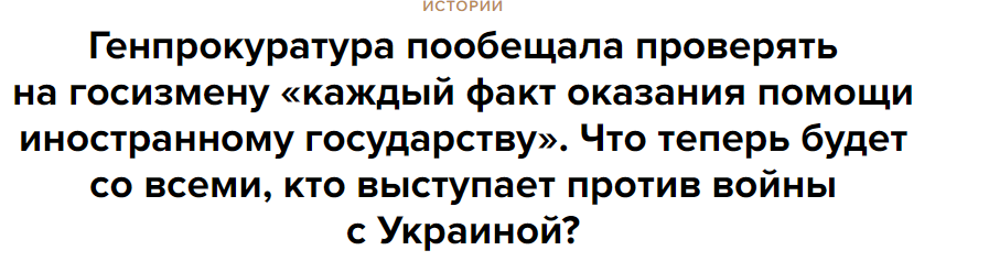 Немного умиляет это: "Не думаю, что по этой статье могут осудить за моральную поддержку — например, за посты в интернете с поддержкой Украины. Все-таки для того, чтобы можно было «натянуть» на квалификацию по 275 статье УК РФ, должна быть существенная помощь. Также надо учитывать, что пропускная способность органов следствия ФСБ по делам о госизмене не такая высокая. Это всего 15-20 дел в год. Не думаю, что они справятся с большим количеством дел, учитывая всю ситуацию и ограниченный следственный аппарат, который есть у ФСБ."