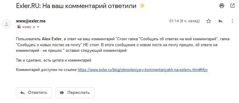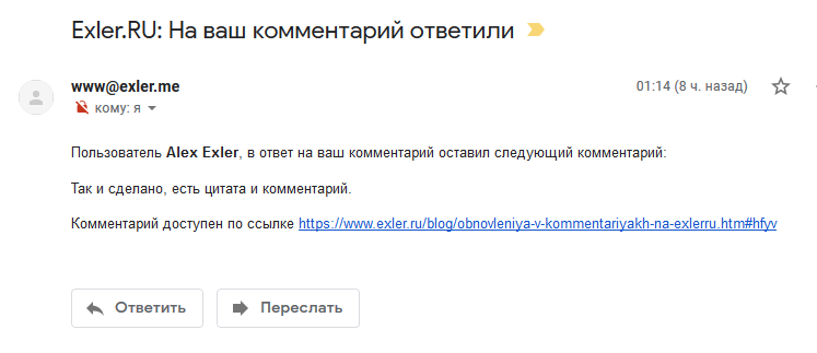 Ещё было бы круто процитировать в письме мой комментарий, на какой ответ. А то текст ответа виден, а на что он отвечает - непонятно, надо по ссылке переходить.
