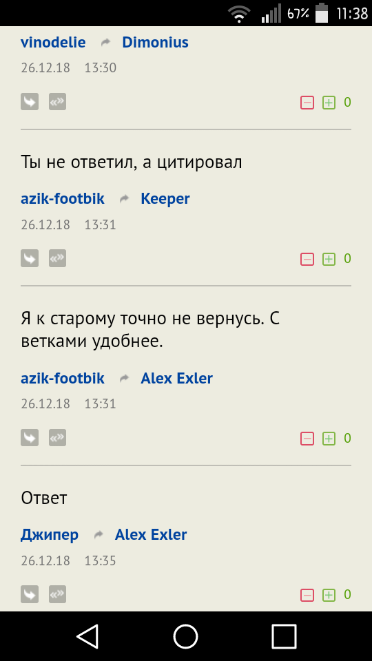 Хорошо бы сделать автоматическую цитату того поста, на который отвечают. А то видно, что ответ на какой-то пост, а на какой - не видно.