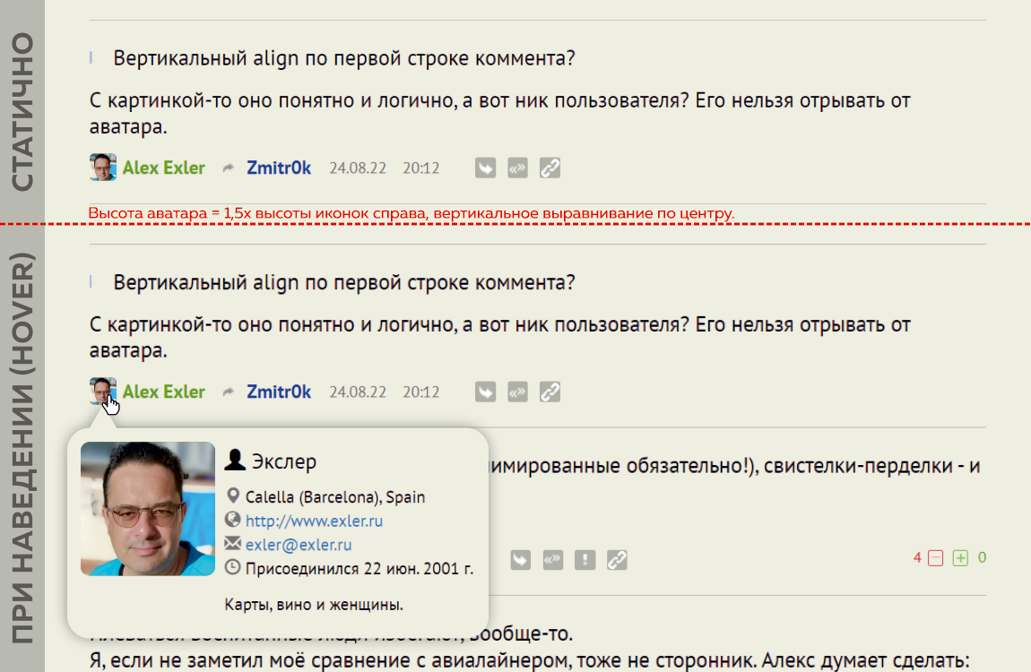 С картинкой-то оно понятно и логично, а вот ник пользователя? Его нельзя отрывать от аватара.