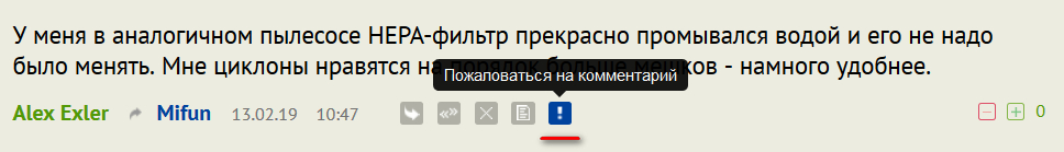 Для зарегистрированных пользователей у каждого комментария появилась новая пиктограмма "Пожаловаться на комментарий".