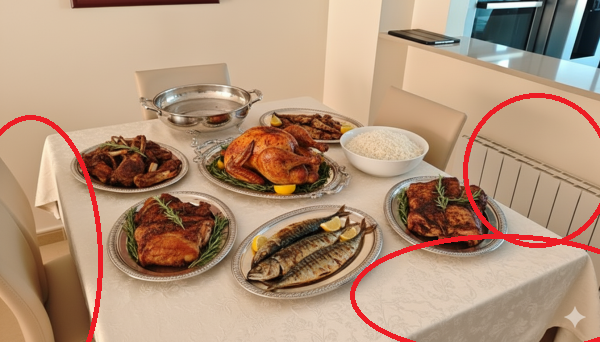 Стол внезапно стал короче, справа пропал стул, слева вообще со стулом что-то странное.
