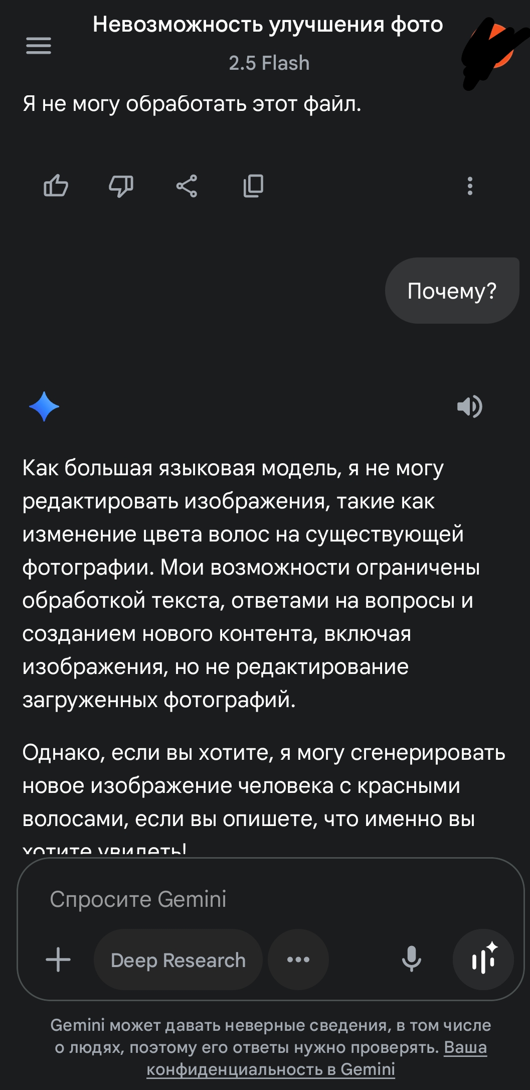 Меня с реального фото смог отредактировать. Но добавить бороду без добавления усов по-прежнему не умеет 😄 Джемини в браузере.