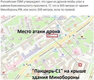 Москву атаковали беспилотники. Один из дронов упал недалеко от здания Минобороны РФ.
