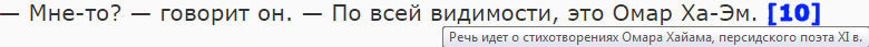 - С тех пор, как я его знаю, он не переставая декламирует мне безбожные стихи какой-то особы, которую он называет Рубай Ате, и если судить по ее стихам, это негодница, каких свет не видал.