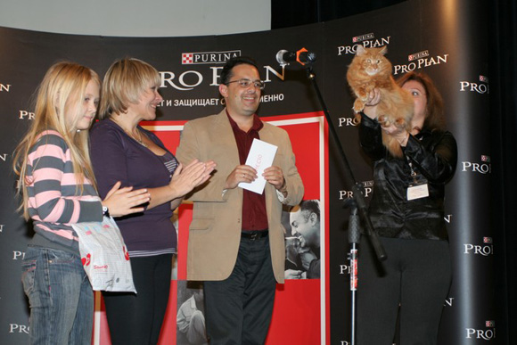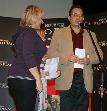 Прислали фотографии награждения с вручения призов. Мы с Ириной Грибулиной и ее дочкой вручаем приз за второе место - курильскому бобтейлу Лелю, между прочим.