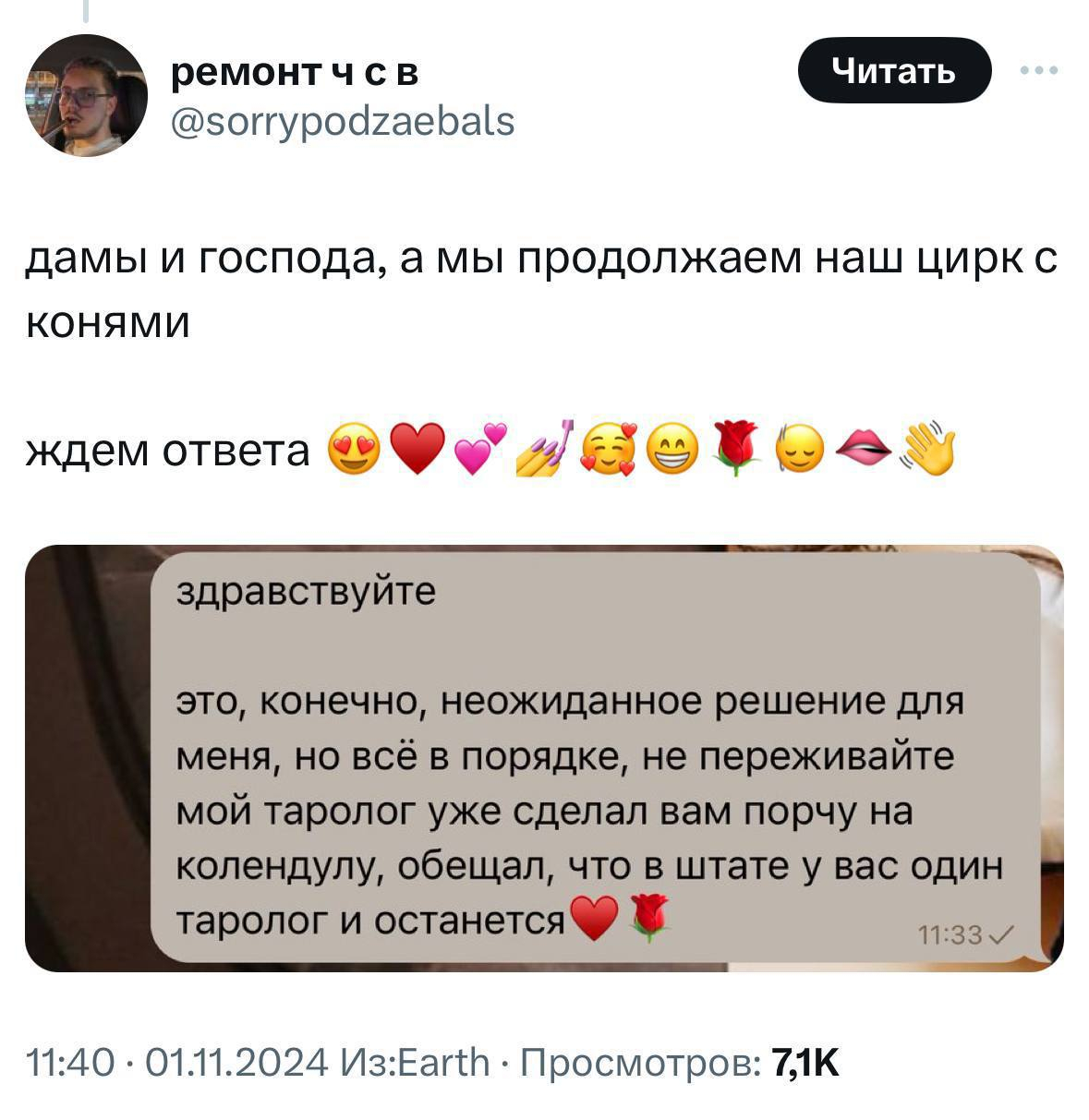 Чо, красава твой таролог. Я б тебе, падла, наработал!