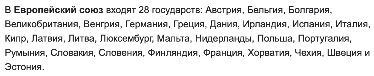 [б] Австрия, Бельгия, Болгария, Венгрия, Германия, Греция, Дания, Ирландия, Испания, Италия, Республика Кипр, Латвия, Литва, Люксембург, Мальта, Нидерланды, Польша, Португалия, Румыния, Словакия, Словения, Финляндия, Франция, Хорватия, Чехия, Швеция, Эстония.