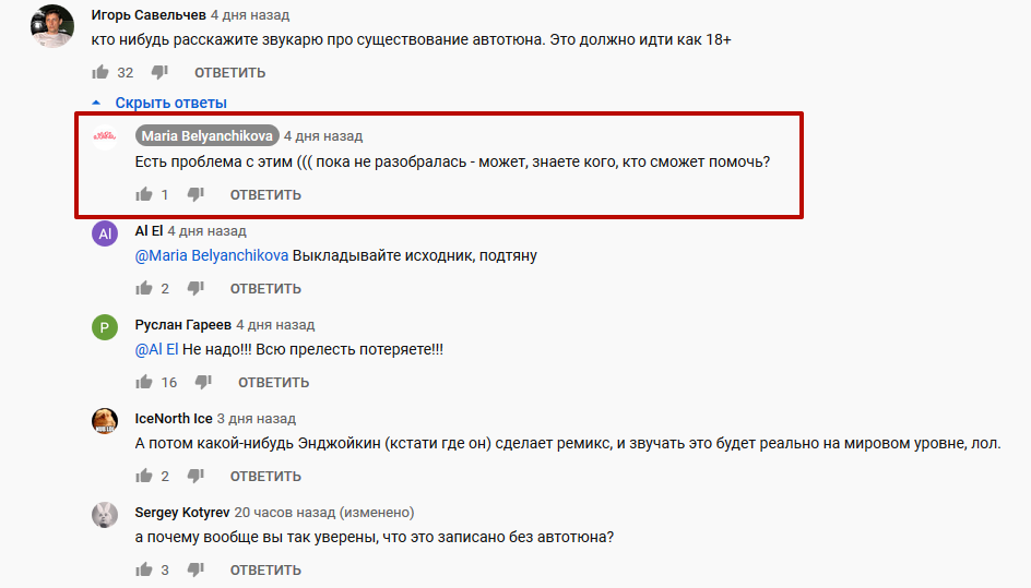 И поэтому я категорически против подхода "на компьютере сделать". Увы, в живую "дорисовывают" ноты тоже. Я не про фонограмму, а когда человек поёт, а его пение плагин во включённой программе его звуки исправляет так, тобы они в ноты попадали.