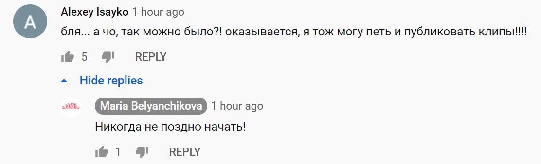 Вау!!! Это прям ШЕДЕВР!!! Ещё бы узнать имя педагога по вокалу (ведь слышно же, что занималась с педагогом)))) Ну и студию звукозаписи где этот шедевр родился не плохо бы было прорекламировать))) Отправлю жену к ней - пусть поучится петь))))