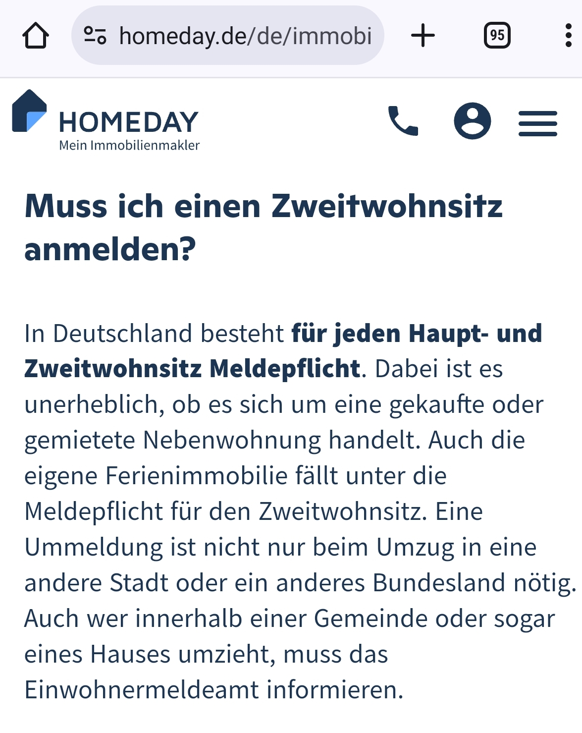 Тоже jein. При длительном проживании zweiter Wohnsitz тоже обязательно нужно регистрировать.