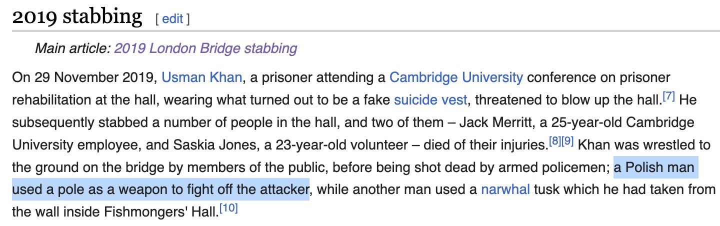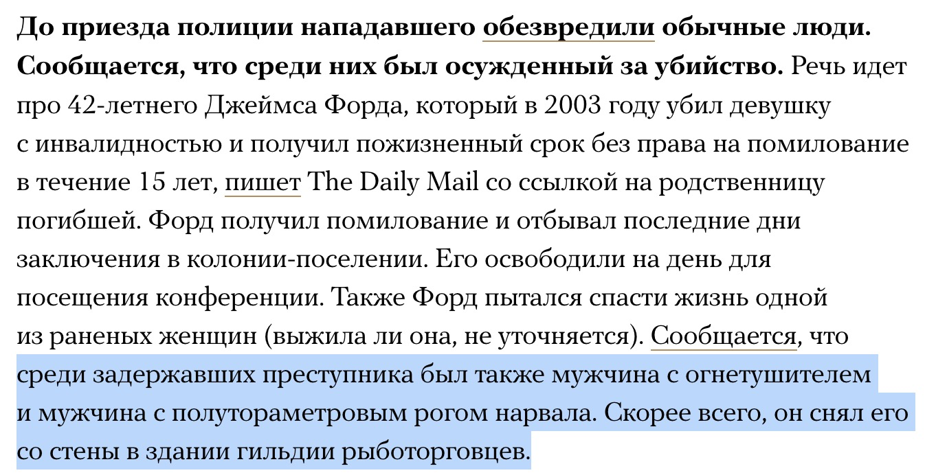Но там конечно жесть была, урод двоих убил, а само это экзотическое задержние произошло среди бела дня посреди Лондон Бридж