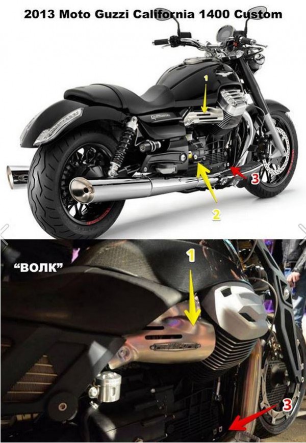 «Новости импортозамещения, как они есть! «Первый русский» мотоцикл «Волк» от «Ночных волков» при ближайшем рассмотрении оказывается… Moto Guzzi с перепиленной рамой и изуродованной для красоты вилкой. А, и колеса где-то нарыли с сеточкой. На приборке предательски написано Moto Guzzi, а режим езды выбран – исконно русский PIOGGIA. Ну, то есть «дождь». В США Moto Guzzi California стоит 15500 долларов и выше», – написал Хомак и привел соответствующие ссылки на исконную версию «Волка».