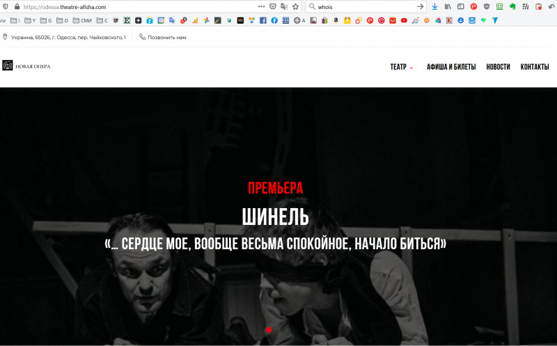 Беглое знакомство с сайтом показало, что жулье не парилось - там реально буквально пяток страничек. Предлагаются билеты всего на четыре спектакля (и обидно, что ни одного этого спектакля нет в репертуаре Одесского оперного - вот как-то прям неаккуратненько), при нажатии на "Купить" под конкретным спектаклем перебрасывают на отдельную страницу с теми же четырьмя спектаклями, и только там уже можно ткнуть и попасть на страничку типа как покупки.
