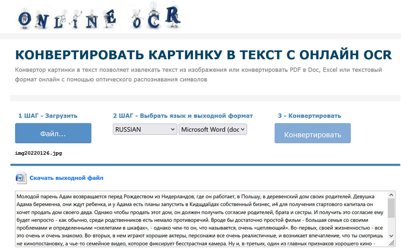Сервис называется Free Online OCR, он бесплатный (с определенными ограничениями), поддерживает не один десяток языков, работает и с изображениями, и с PDF, умеет преобразовывать распознанный текст (или файл PDF) в документ Word, документ Excel или в обычный текст. Очень неплохо справляется даже с некачественными картинками и PDF - вот прям рекомендую.